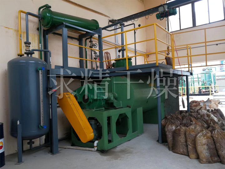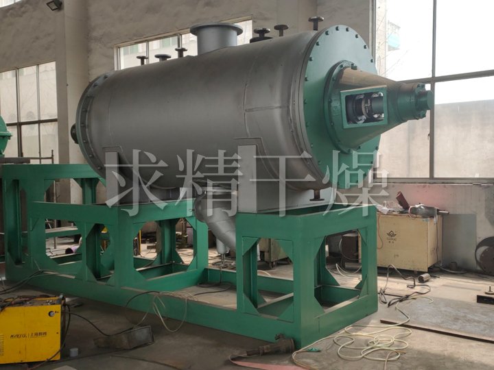 本機(jī)是一種新穎臥式間歇式真空干燥設(shè)備,濕物料經(jīng)傳導(dǎo)蒸發(fā),帶有刮板攪拌器不斷清除熱面上的物料,并在容器內(nèi)推移形成循環(huán)流,水份蒸發(fā)后由真空泵抽出。